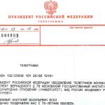 On August 26, the President of the Russian Federation Vladimir Putin sent his congratulations to MGIMO Rector Anatoly Torkunov on his 70th anniversary.